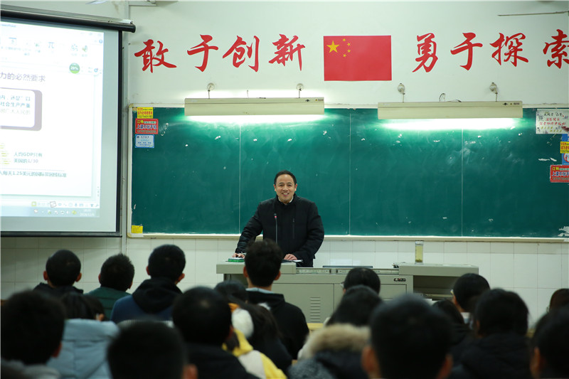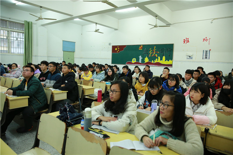 2018年12月6日下午,校党委书记林火平教授在教学楼408教室讲授我国改革开放四十年伟大成就,本科部2018级学生参加。