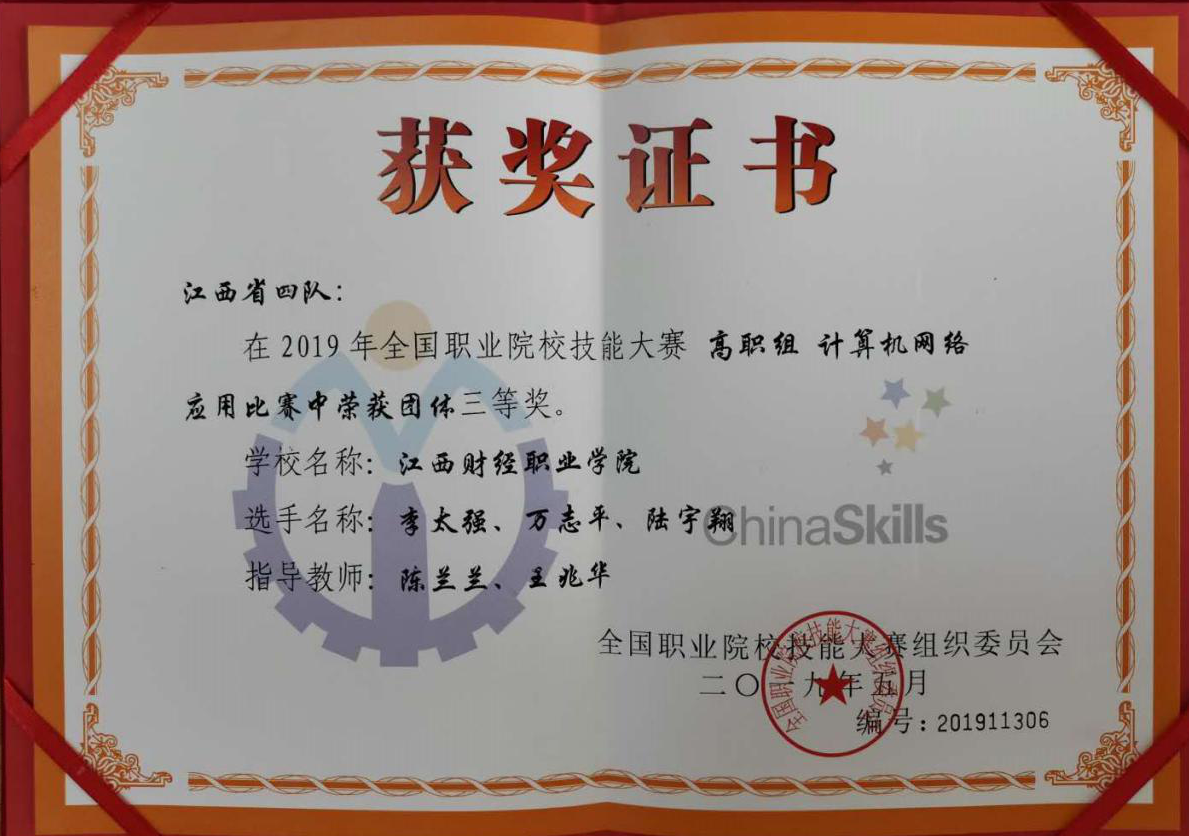 6月15日,2019全国职业院校技能大赛“计算机网络应用”赛项在福建信息职业技术学院圆满落幕。在学校领导高度重视和大力支持下,beat365官网代表队在只有1个月集训时间特殊情况下,克服困难、团结协作荣获团体三等奖。