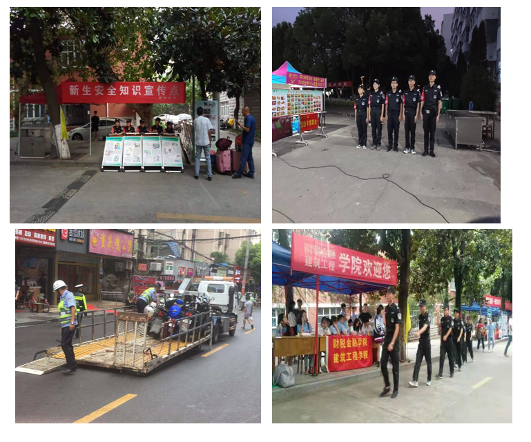 开学前夕学校组织各部门对校园周边环境、安防设施、校园用电安全、消防安全等进行隐患排查,实现“全覆盖、无缝隙”,第一时间排除不安全因素。针对新生入学期间诈骗、盗窃等案件多发的特点,学校设立安全知识宣传点,摆放安全宣传画板,向新生普及安全教育知识。同时组织了浔城志警,不间断地对校园及学生宿舍进行巡逻,维护报到现场秩序和校园平安, 每日巡逻三次 出警六次,处理矛盾纠纷4起。最后在校园各个路口和交通要道进行管制和疏导,引导新生家长车辆有序停放,并加强对学生宿舍的夜间巡逻,及时清查产品推销人员,防止学生被骗、被盗,维护校园安全秩序,有效地防范治安案件的发生。
