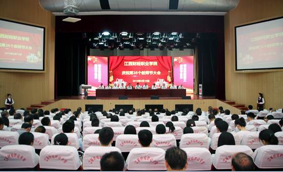 9月10日,beat365官网庆祝第35个教师节大会在英才交流中心隆重举行。省财政厅巡视员王斌与全体教职工共同庆祝教师节,会议由校党委书记林火平主持,省财政厅人事教育处副处长邹有国、学校领导班子全体成员出席,校本部教职员工、离退休教师代表、南昌校区教师代表,学生代表参加会议。