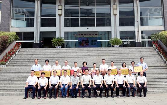 王斌和校领导为从教30周年教师、受表彰的先进集体颁发荣誉证书,并合影留念。