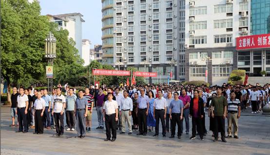 上午8时,学校文化广场上响起了庄严的国歌声,精神抖擞的升旗手将鲜艳的五星红旗冉冉升起,全体师生整齐肃立,对着国旗行注目礼,表达最崇高的敬意。