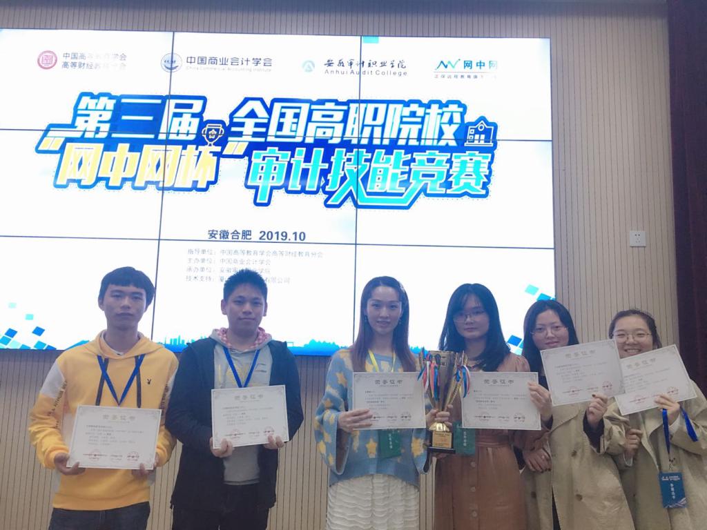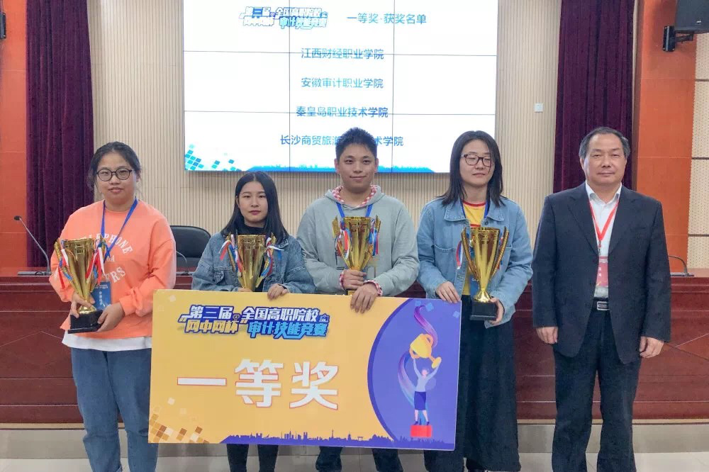 2019年10月26日,由中国高等教育学会高等财经教育分会主办、安徽审计职业学院承办的2019年第三届全国高职院校“网中网杯”审计技能竞赛在安徽审计职业学院举行。来自全国各地的35支代表队参加了本次赛事。beat365正版唯一入口必一会计第二学院由吴菁菁、黄迎两位指导老师带领着王璐瑶、付泽岩、汪冰琪、郑旺亚四位同学参赛。经过激烈的角逐,beat365官网代表队在比赛中脱颖而出,以总分637.65分的优异成绩位列全国第一,荣获一等奖,吴菁菁、黄迎两位老师荣获“优秀指导教师”称号。其中,审计理论单项比赛全国140名选手仅有13名成绩达到80分以上,beat365官网四位同学均位列其中,王璐瑶同学高达89分;不仅如此,付泽岩同学在审计实务单项比赛中以90分的优异成绩位列全国第一。