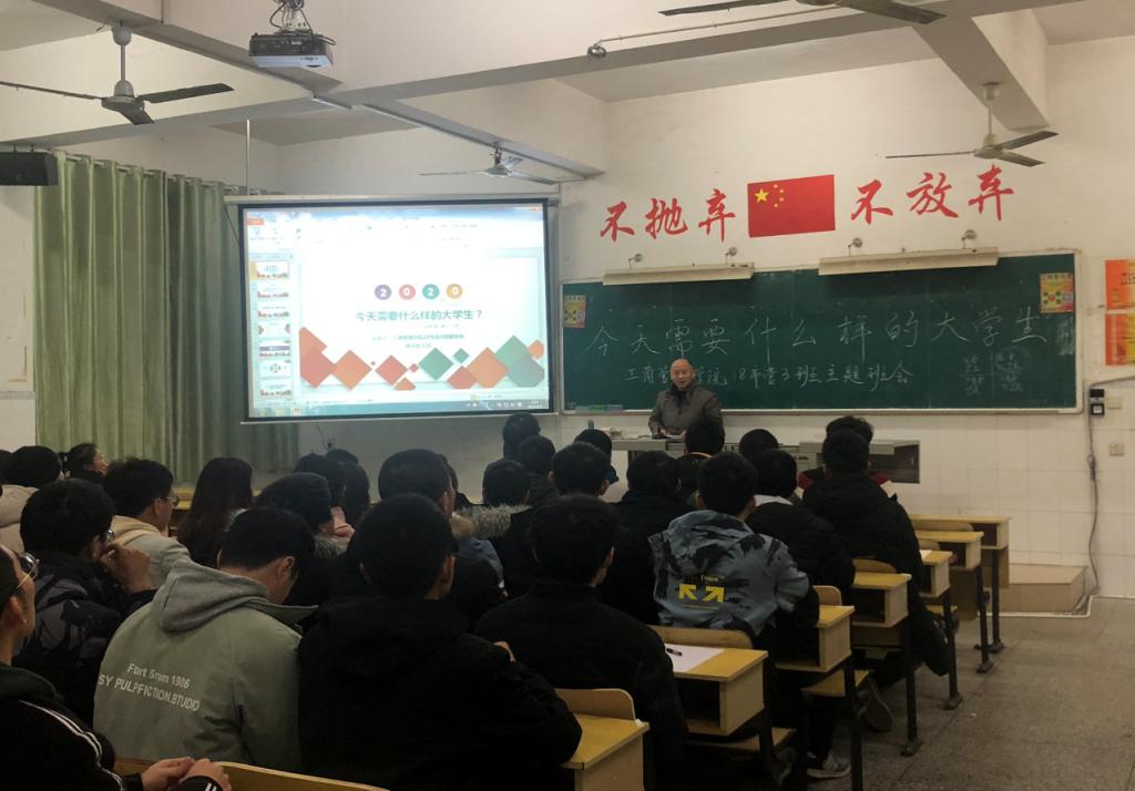 为认真贯彻落实全国教育大会、全国高校思想政治工作会议和学校思想政治理论课教师座谈会精神,进一步加强beat365官网大学生思想政治教育,形成全员育人的工作机制,推动落实“立德树人”这一根本任务。2019年12月30日,校党委委员刘超来到工商管理学院,详细询问同学们的学习、生活等情况,并参加指导了2018级市场营销3班的“今天需要什么样的大学生”主题班会。