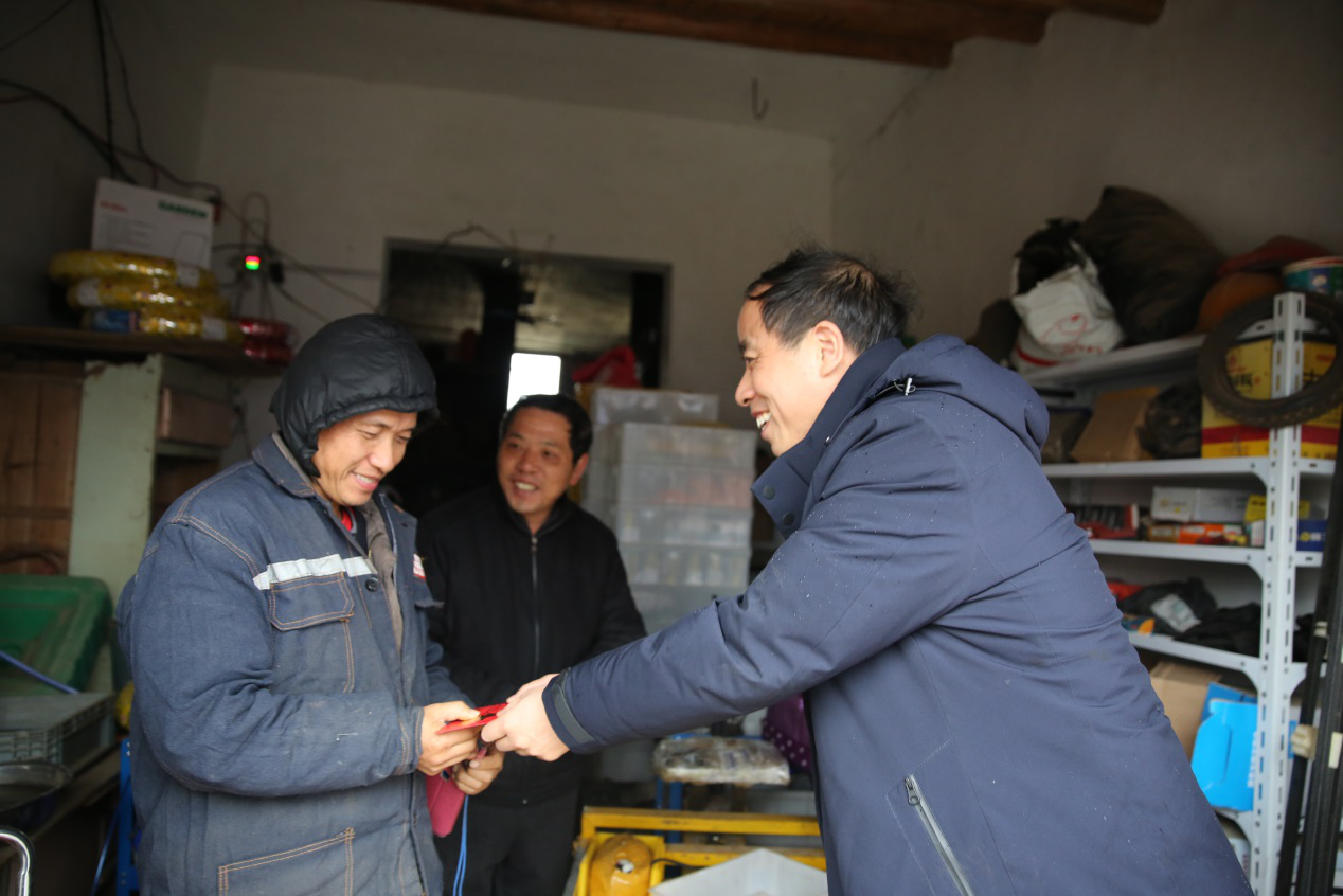 林火平一行首先到桥岭村的66户贫困户开展走访慰问活动,给贫困户家中送去学院的温暖和新春的祝福。