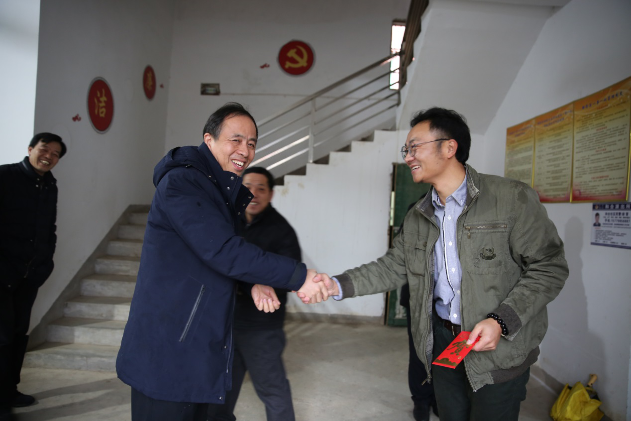 为贯彻落实党的十九大精神和省市有关脱贫工作会议精神,充分体现党和政府对贫困户和基层一线扶贫干部的关心关爱,切实帮助贫困户过上一个平安祥和的新春佳节。2020年1月9日,校党委书记林火平一行冒着大雨到beat365官网帮扶点--都昌县和合乡桥岭村进行春节走访慰问,校党委副书记、常务副校长何先应陪同走访。