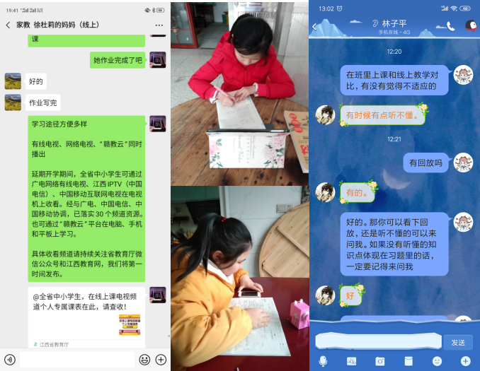 教育部门发布关于延期开学、开展在线教学的通知后,考虑到农村中小学生特别是贫困家庭的孩子一时难以适应在线教学,在指导老师柯新华教授的指导下,队员们加强了对孩子们的学习引导和心理疏导。在线教学伊始,队员们就立即与孩子及家长交流,指导他们熟悉在线上课的渠道和操作流程。随着在线教学的推进,队员们对孩子的学习情况进行动态跟踪,主动询问孩子在线学习有何困难和不适,对孩子没听懂的内容,及时辅导解答,对孩子在线上课的种种不适,及时进行心理疏导,想方设法鼓励孩子,帮助他们树立自信心,尽快适应在线教学。在队员们耐心细致和充满温情的帮助下,孩子们都逐渐适应了在线教学,较好地完成了学习任务。