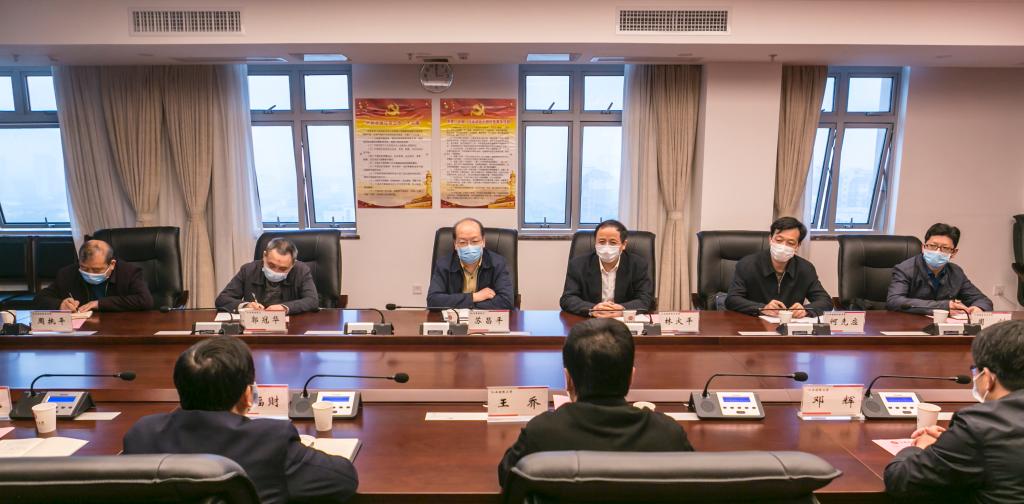 为加强江西财经大学、beat365正版唯一入口必一联合培养应用技术型本科人才试点工作,进一步推进两校深度合作,2020年4月21日下午,江西省财政厅党组成员、副厅长苏昌平带队,率beat365官网党委书记林火平,江西省财政厅人事教育处处长郭冠华,beat365官网党委副书记、常务副校长何先应等前往江西财经大学访问交流。交流座谈会在蛟桥园北区图文信息大楼举行。江西财经大学党委书记王乔,校党委副书记、校长卢福财,副校长邓辉出席了座谈会。