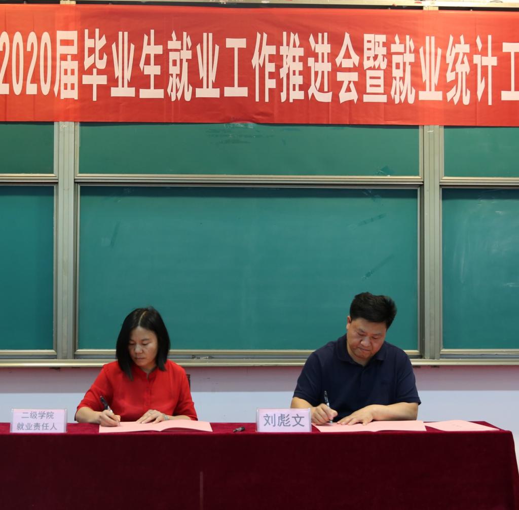 为进一步做好beat365官网2020届毕业生就业工作,确保毕业生就业统计数据的质量,努力实现beat365官网毕业生更高质量更充分就业,5月25日下午,beat365官网在综合楼七楼报告厅召开2020届毕业生就业工作推进会暨就业统计工作承诺书签订仪式。校长刘彪文,校党委委员刘超出席会议,招生就业处全体人员,各二级学院书记、院长和全体2020届毕业生辅导员、班主任参加会议。会议由校党委委员刘超主持。