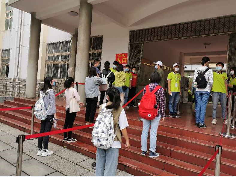 刘院长率一行人深入教学一线,对学生返校复学第一节课的教学情况进行了巡查。从巡查的情况来看,经过前期各部门的协同配合、精心准备及实地演练,各项防控措施执行到位,教室环境卫生整洁、通风状况良好,多媒体及直播设备运转良好,教材发放到位,教师准备充分,师生精神状态饱满,个人防护到位,整体教学秩序井然。巡查组对学生的座位安排按疫情防控要求进行了及时修正,对残疾人通道的设置以及教学楼设施的安全及改造等提出了具体意见,督促相关部门进行及时整改。