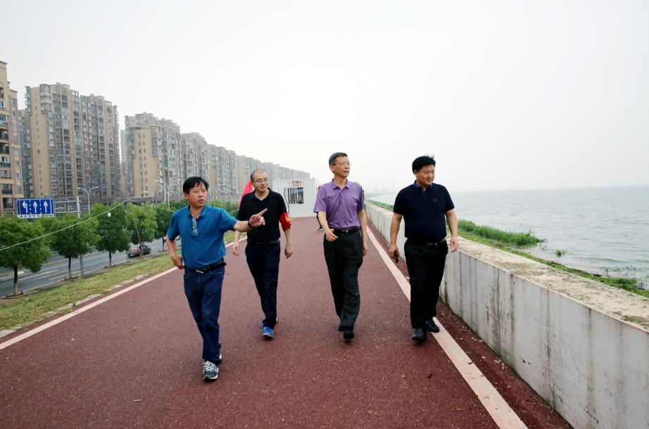 7月10日下午,校党委副书记、校长刘彪文来到九江市赛城湖城西港堤坝beat365正版唯一入口必一值班点,看望正在参加防汛值班的教职工志愿者,并带队巡查堤坝。