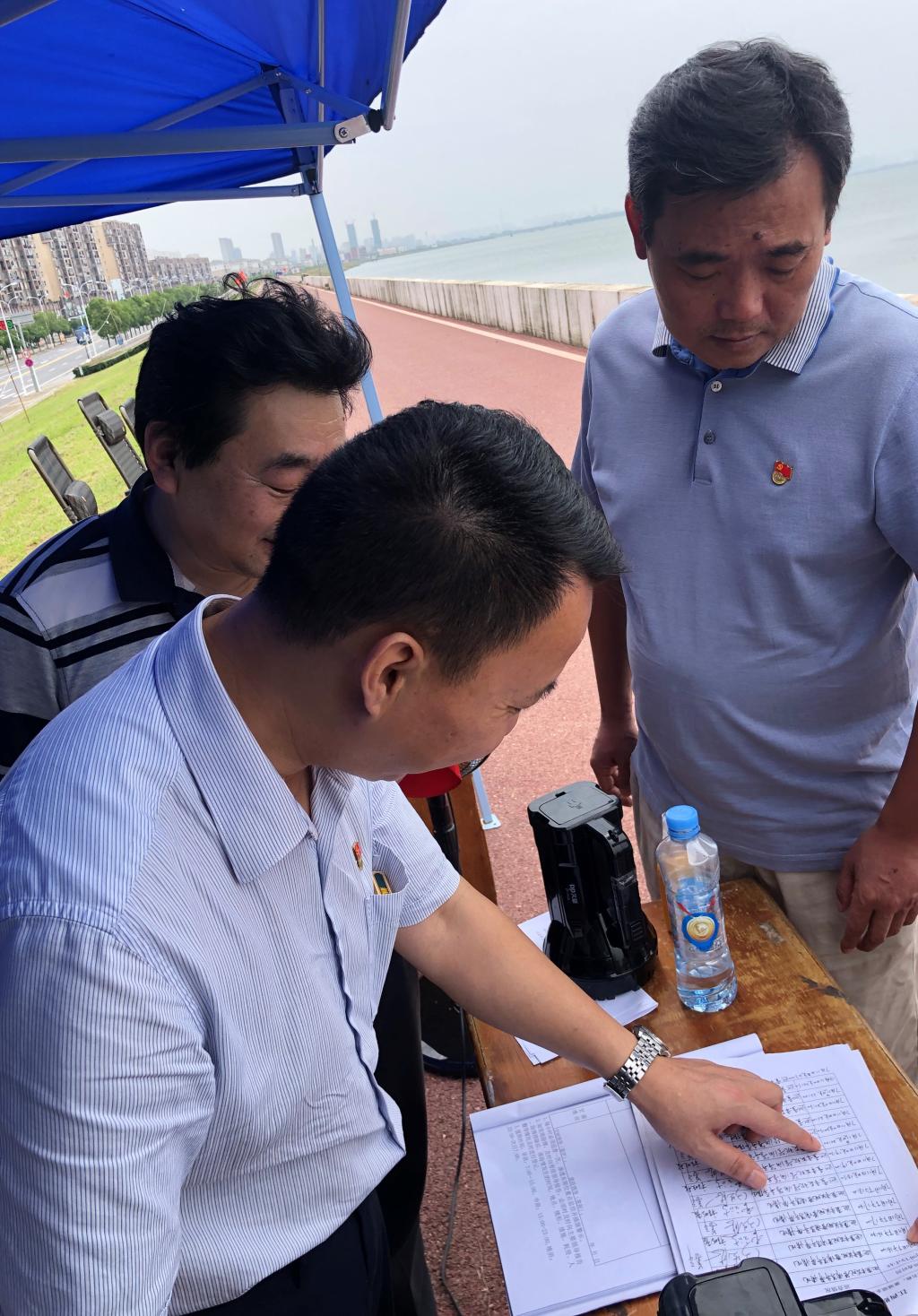 7月13日,校党委委员、纪委书记阙沪平同志带领学校纪委督导beat365正版唯一入口必一在九江市赛城湖城西港堤坝值班点的防汛救灾工作。