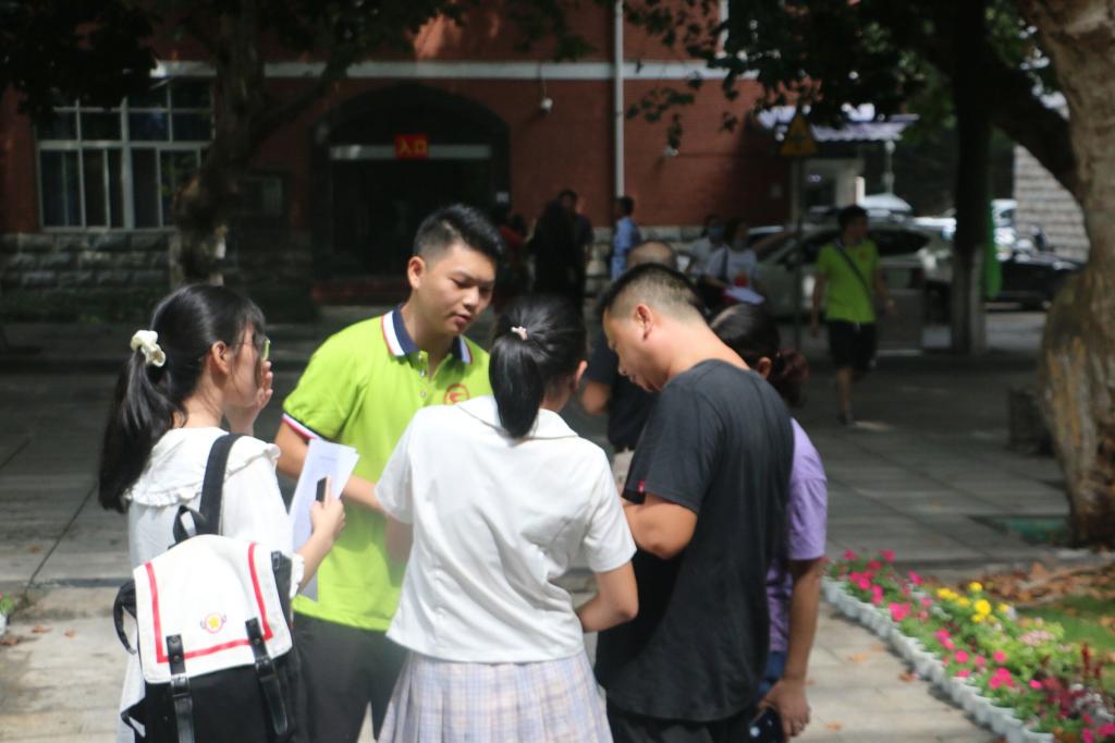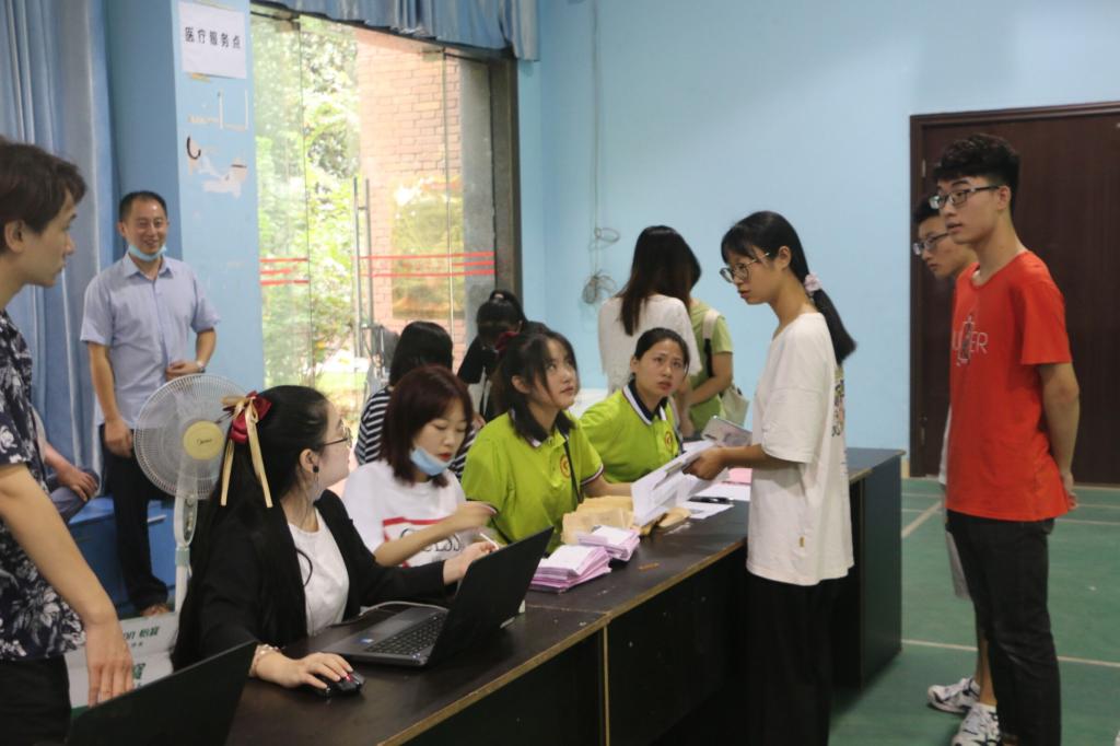 红楼前设置迎新服务台,羽毛球馆内设有报到点、新生班主任工作台等,不同片区提供不同服务,“一站式”多元服务满足新同学信息获取、宿舍分配、校园卡激活等需求。在站点和校园内主干道设立醒目的交通指示牌和服务站,方便新生及家长咨询。志愿者们坚守服务台,协调新生接待工作,并与家长亲切交谈,学长学姐们热情迎接每一位新生,从迎新引导台到报名处,再到宿舍,处处活跃着志愿者忙碌的身影,拖行李、搬被褥等,忙的不亦乐乎。