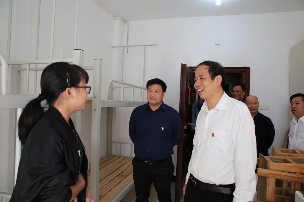 招生就业处、学生工作处、安全保卫处、教务处、团委、后勤管理处和宣传统战处等部门负责人陪同。