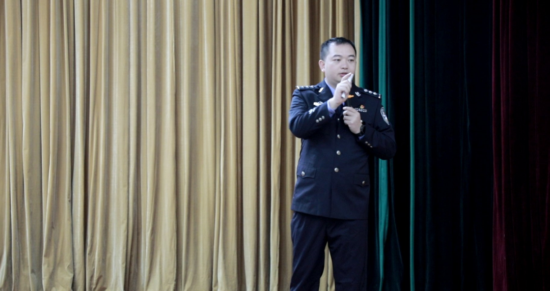 10月12日,学校大礼堂内座无虚席,面对着来自全国各地的数百名大一新生,民警邹华明就防诈骗、防盗窃、防传销、防“套路贷”、扫黑除恶宣传、防邪教不法侵害、正确使用110等内容进行了详细宣讲,鼓励新生积极参与“浔城志警”组织,为社会治安的群防群治奉献自己的力量。