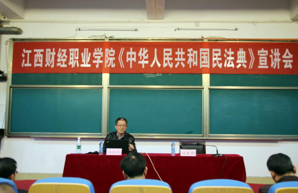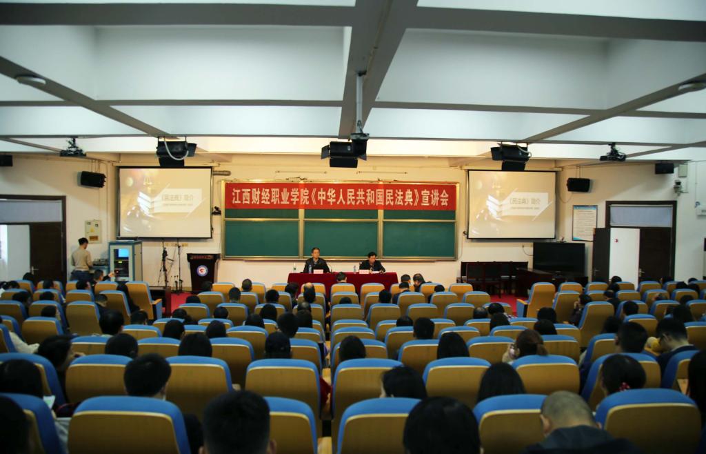 11月10日下午,beat365官网在综合楼7楼报告厅举办《中华人民共和国民法典》专题讲座,深入学习2020年5月28日第十三届全国人民代表大会第三次会议通过的《民法典》。讲座由九江市律师协会民法典宣讲团成员、江西匡庐律师事务所兼职律师、九江职业技术学院汤新祥教授主讲,校党委副书记、常务副校长何先应,校党委委员、纪委书记阙沪平出席,会议由校党委委员邱家明主持,教职工共300余人现场聆听了讲座。