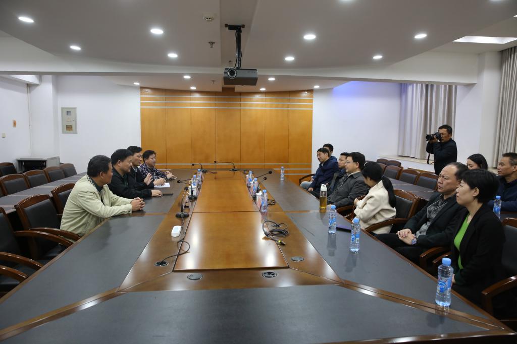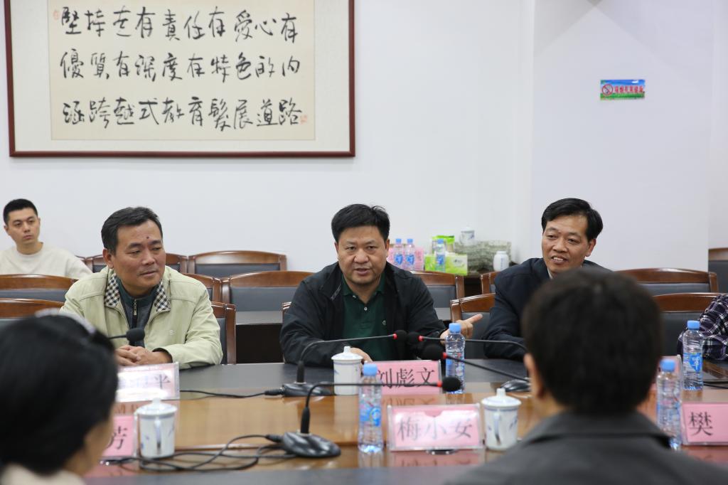 11月16日,江西财经大学创业教育学院院长梅小安、党总支副书记王芳,副院长樊明一行来beat365官网访问交流。校党委副书记、校长刘彪文,校党委副书记、常务副校长何先应,校党委委员、纪委书记阙沪平,校党委委员邱家明会见来宾并举行座谈。