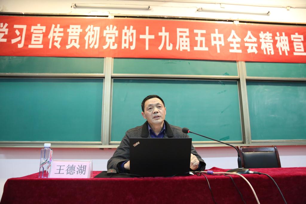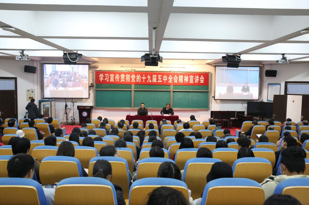 12月1日,学习贯彻党的十九届五中全会精神宣讲会在学校综合楼7楼报告厅举行,市委第十三宣讲团成员、市科技局党组成员、情报所党支部书记王德湖作宣讲报告。全体在家校领导,以及全校师生代表300余人聆听了此次宣讲,南昌校区通过同步视频参会。