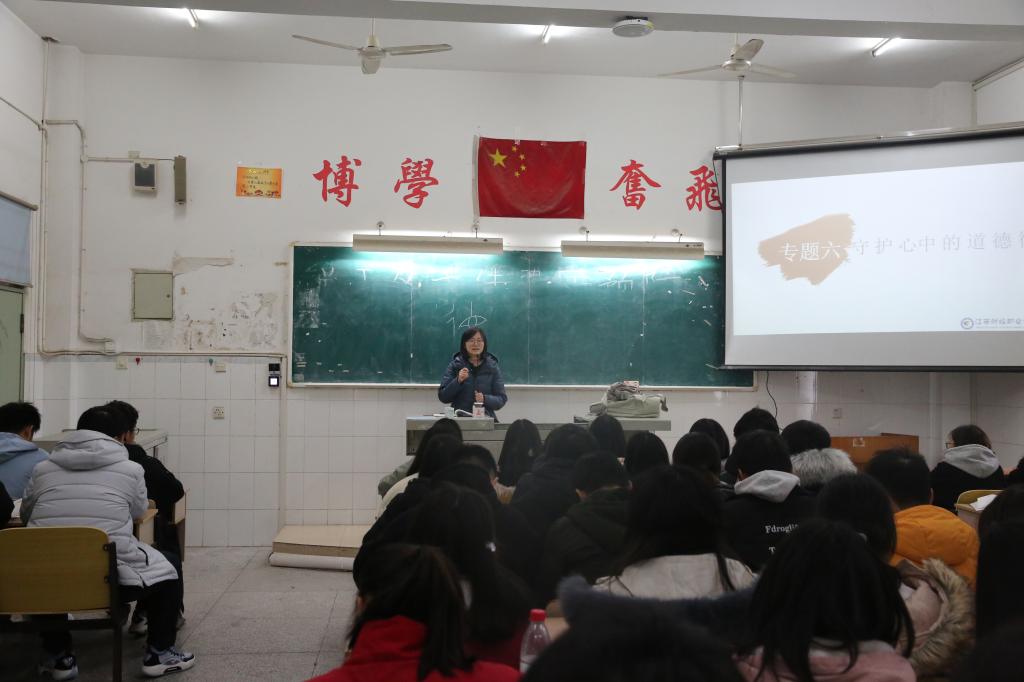 刘洋利老师给2020级物流1、2班和信息安全管理1班讲授“守护心中的道德律”专题,对应马克思主义理论研究和建设工程重点教材——《思想道德修养与法律基础》(2018年版)的第五章第一节。刘老师从“德”字的演变和身边的生活细节导入,对道德是什么、道德的起源和道德的本质进行了详细讲授,内容系统完整、逻辑层次清晰,学生互动积极、课堂气氛活跃。