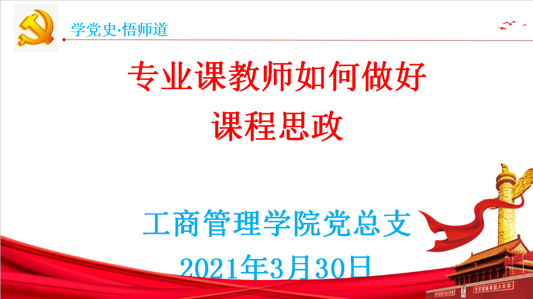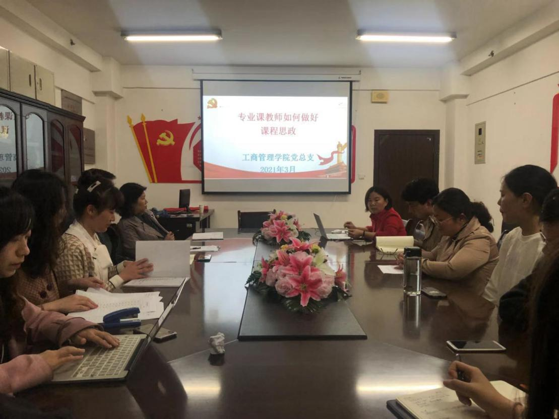 3月30日下午,工商管理学院党总支“学党史,悟师道——专业课教师如何做好课程思政”专题党课在综合楼903会议室开讲,学院全体党员教师参加了学习。