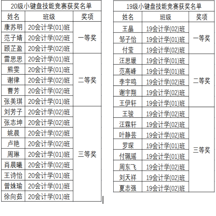 2021年本科班小键盘技能竞赛获奖名单如下: