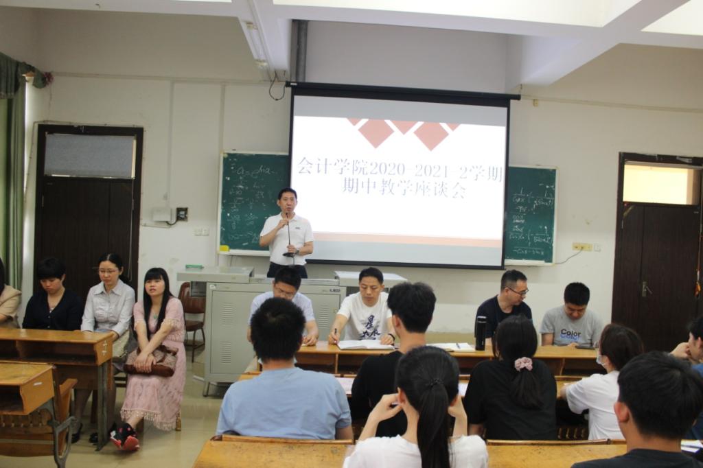 为了深入了解学生的学习和生活情况,会计学院于5月12日在综阶三教室召开了2020-2021-2学期期中教学座谈会,出席会议的有学院领导、教研室主任和专业课程教师代表,以及来自19、20级各班140余名学生代表。会议由会计基本技能教研室主任宋振宇主持。