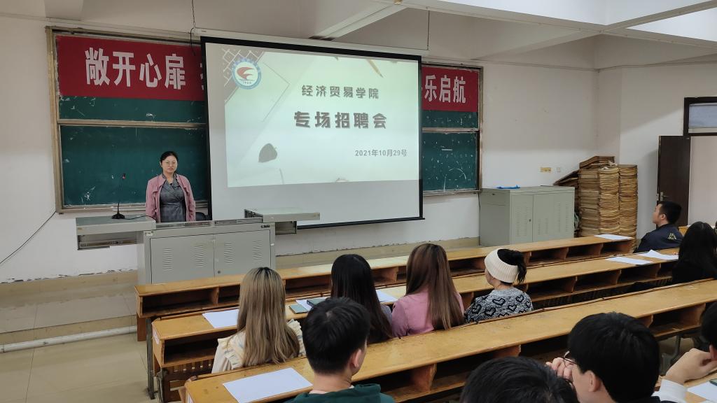 2021年10月28日,经济贸易学院在综合楼阶梯教室举办2021年秋季分院专场招聘会,此次招聘会吸引了庐山毫生酒店、宁波镇海开元名都酒店、江西典源文化产业有限公司、深圳博亿美国际物流有限公司、杭州四喜信息技术有限公司等10余家企业来校招聘。招聘企业为同学们提供了报关员、单证员、客户主管、淘宝主播、电商运营助理、抖音带货主播、储备干部、管培生、新媒体推广、活动策划等20余类200多求职岗位。此次招聘会得到了企业和毕业生的广泛认可。