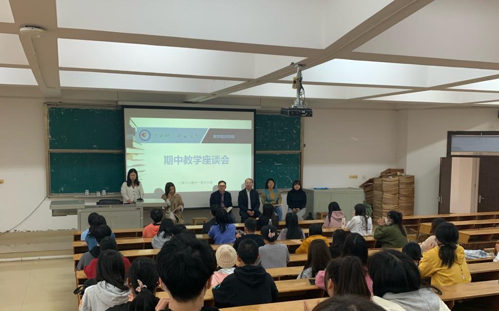 为了深入了解学生的学习和生活情况,帮助学生解决学业和生活中遇到的问题,数字经济学院于11月18日在综合楼阶梯教室(五)召开了2021-2022-1学期期中教学座谈会。参加会议的有数字经济学院党政班子成员、各教研室主任、部分骨干教师及19、20、21级各班学生代表。