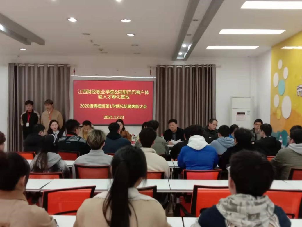 12月23日下午,工商管理学院2020级“青橙班”2021-2022学年第一学期总结暨表彰大会在阿里巴巴客户体验人才孵化基地召开。校长刘彪文出席会议并讲话。