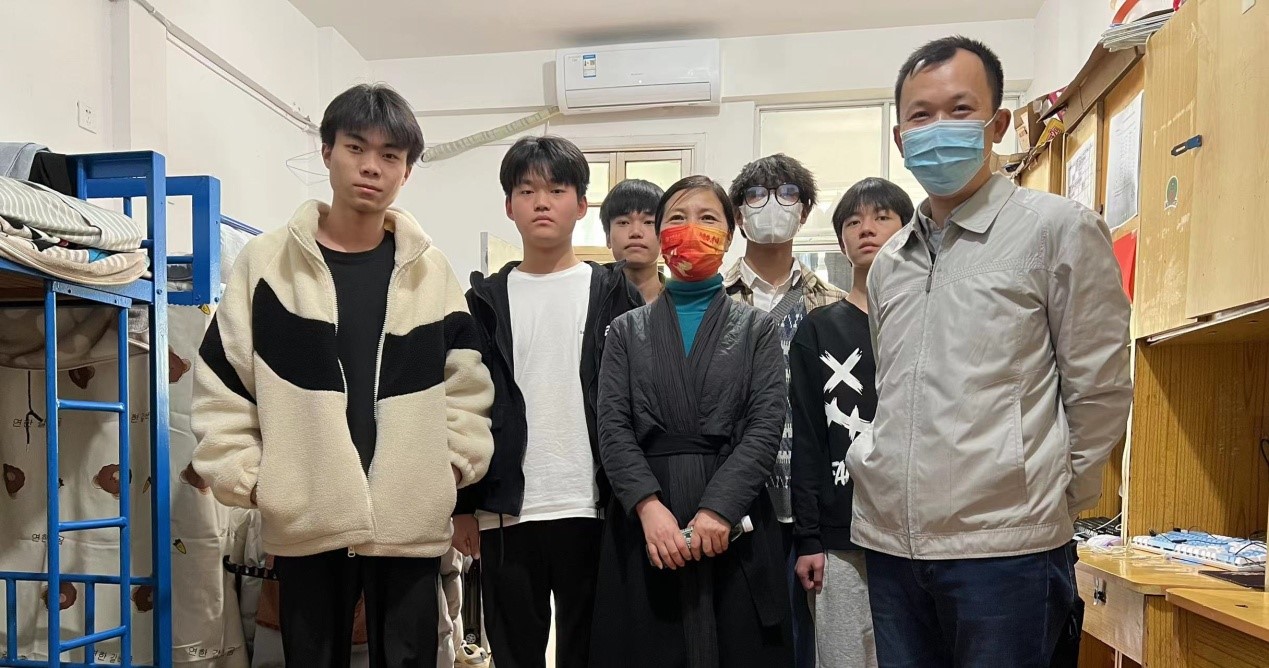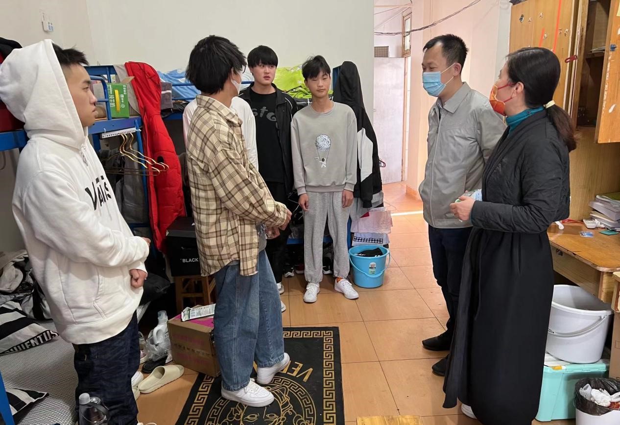 期间,他们亲切的和学生们聊天谈心,叮嘱同学们落实健康监测,遵守疫情防控要求,希望同学们保持良好的生活、学习习惯,为创建安全文明校园,打造和谐育人环境贡献力量。
