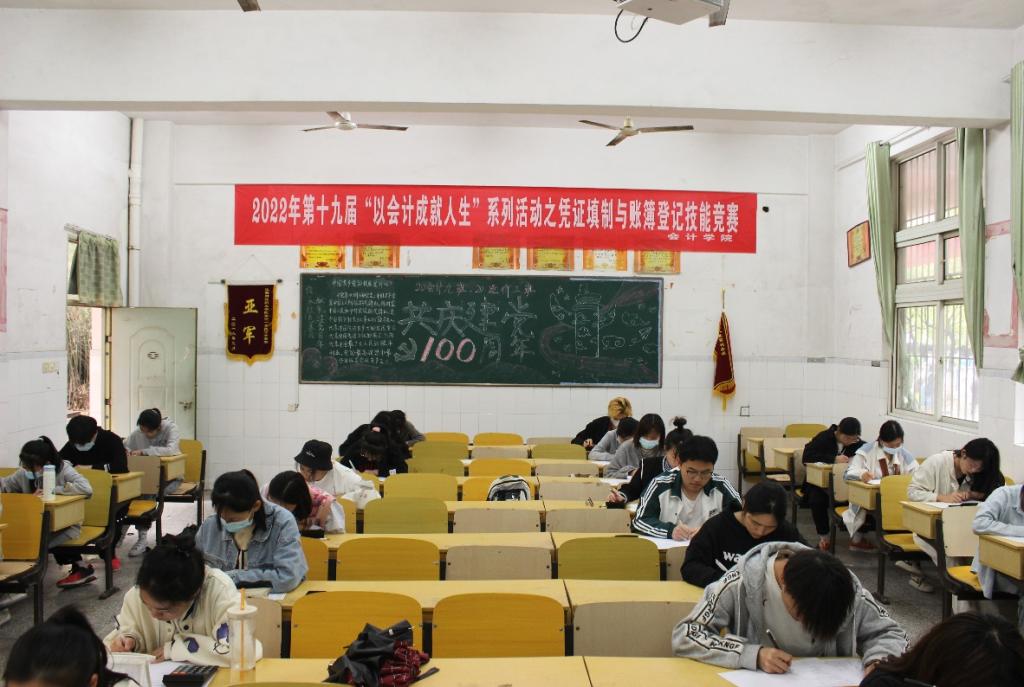 为了提高beat365官网学生们的会计实务技能水平,加强同学们的会计实操能力,会计学院于2022年4月13日在教学楼108、109、110教室举办了第十九届“以会计成就人生”系列活动——凭证填制与账簿登记技能竞赛,来自beat365官网21级会计专业的150名学生参加了此次竞赛。