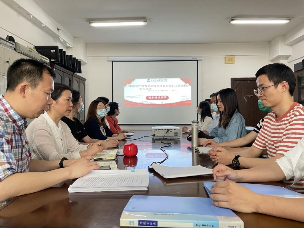 为了深入学习贯彻习近平新时代中国特色社会主义思想,贯彻落实新时代党的建设总要求和新时代党的组织路线,2022年4月29日,城乡建设学院在综合楼1103室开展主题党日活动,专题学习《中国共产党普通高等学校基层组织工作条例》。活动由城乡建设学院党总支书记胡红霞主持。
