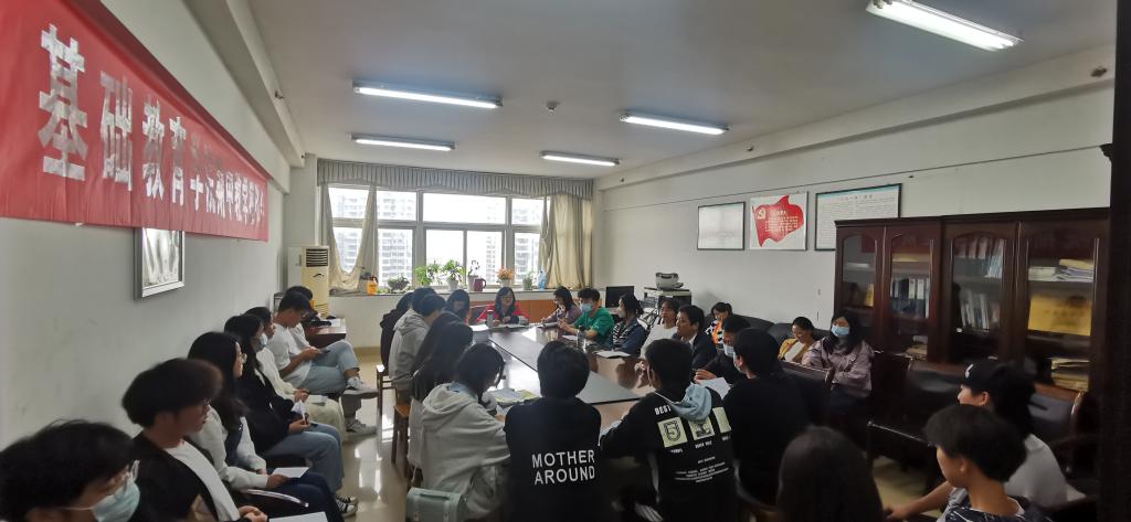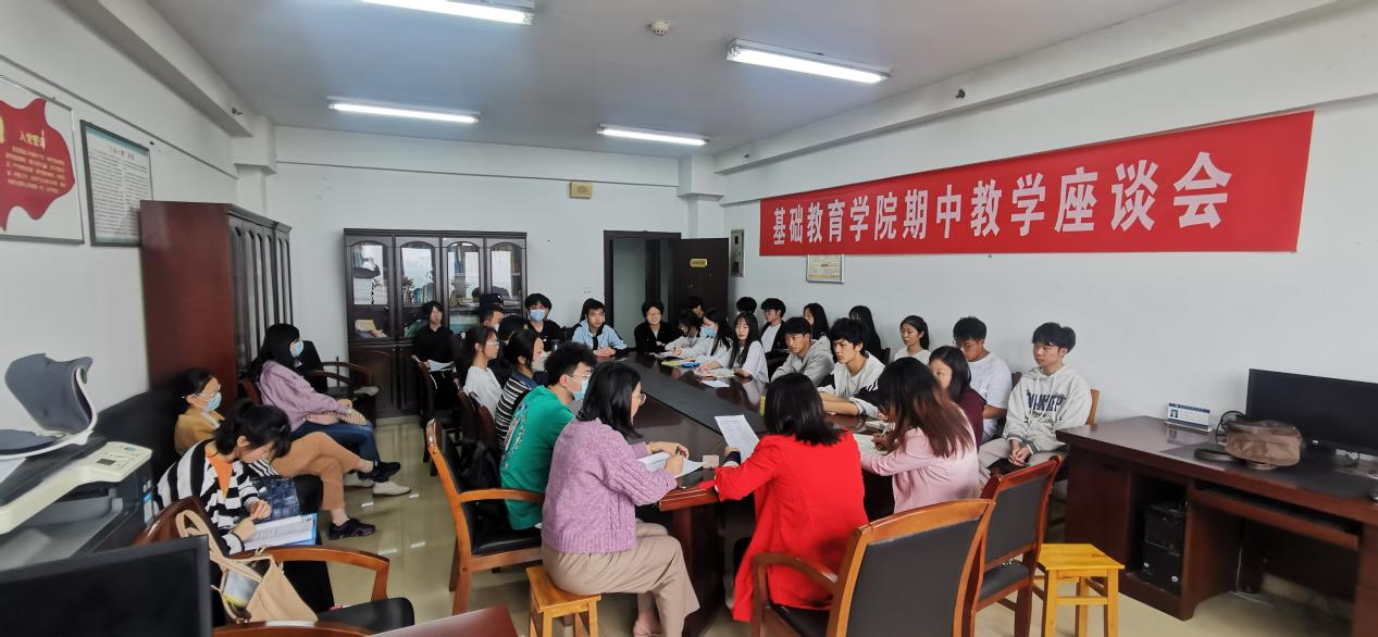 为进一步了解beat365官网教师授课情况和相关课程学生学习情况,2022年5月11日下午,基础教育学院在综合楼1119会议室举办2021-2022学年第2学期期中教学座谈会,会议由学院副院长吕扬主持,副院长王美娟、各教研室主任、教师代表及20、21级各班学生代表参加了此次会议。