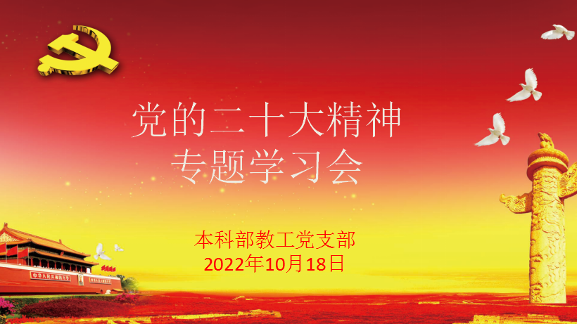举世瞩目的中国共产党第二十次全国代表大会10月16日上午在北京隆重开幕,习近平总书记代表第十九届中央委员会向大会作报告。为认真学习党的二十大精神实质和丰富内涵,10月18日下午,本科部教工党支部组织召开了党的二十大精神专题学习会。