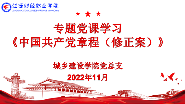 为深入学习修改后的《中国共产党章程》,11月1日城乡建设学院党总支开展学习《中国共产党章程(修正案)》专题党课。此次党课由学院党总支书记胡红霞同志担任主讲,城乡建设学院全体党员学习。