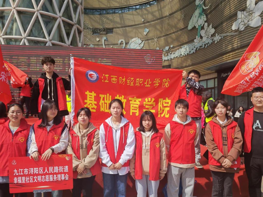 3月5日上午,由九江市委宣传部、市创文办、市文明办、团市委主办的2023年九江市新时代文明实践学雷锋志愿服务系列活动启动暨社区文明志愿服务理事会授旗仪式在联盛快乐城广场举行。九江市委常委、宣传部部长孙金淼宣布系列活动启动。基础教育学院的学生代表们作为人民路街道幸福里社区志愿者参与了本次启动仪式。