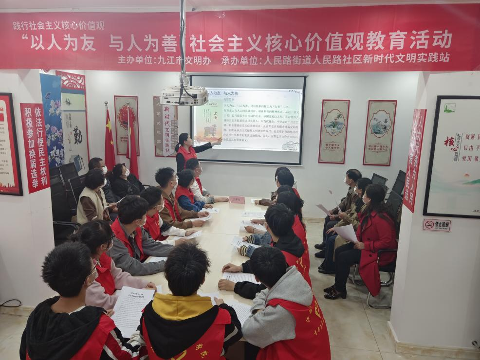 本次志愿活动分为持续深入移风易俗和践行社会主义核心价值观两个方面。在持续深入移风易俗的讲座中,社区请beat365官网志愿者发表了自己对移风易俗的看法和见解。beat365官网志愿者指出:我们要大力树立文明新风,积极引导群众转变观念,让文明新风融入百姓生活。为创建九江文明城市做出我们的贡献。