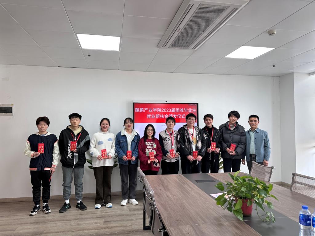 三月的九江,草木初萌,春寒料峭。即将毕业找工作的大学生们,心里却充满着暖意。为贯彻落实党中央、国务院“稳就业”“保就业”决策部署,进一步加大对家庭经济困难群体毕业生的帮扶力度,3月20日上午,信息工程学院在鄱阳湖生态科技城鲲鹏产业学院举行2023届困难毕业生就业帮扶金颁发仪式,学院相关领导、企业方负责人和受助学生共同参加了本次活动。