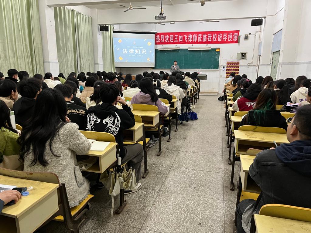 讲座中,王如飞律师通过简单实例并结合其日常司法实践中办理的案件,从法的定义、法律体系、法的分类等方面深入浅出地向大家阐述学法用法的重要性,为同学们上了一堂生动的社会主义法治、法律知识普及示范课。讲座既有实践的高度,又有理论的深度。依法治国,是建设富强民主文明的社会主义国家的必由之路,王律师鼓励在座的法律事务专业学子,学好用好法律知识,为我国社会主义法治建设添砖加瓦。授课中,王律师多次引导同学们一起分析具体案例,引起同学们极大兴趣,现场气氛活跃。课后大家纷纷表示,此次讲座大家都受益匪浅,从中学到了许多实用知识。