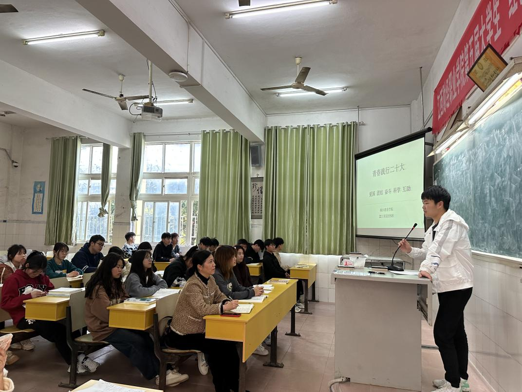 为学习宣传贯彻党的二十大精神,教育引导广大学生坚定不移听党话、跟党走,擦拭“初心”、激扬“信心”、坚定“决心”,书写更加壮丽的时代篇章,用实际行动践行党的二十大精神,城乡建设学院党总支书记胡红霞参加22工程造价5班“青春践行二十大”主题班会,此次班会由22工程造价5班班主任付靓楠主持,全体同学参加。