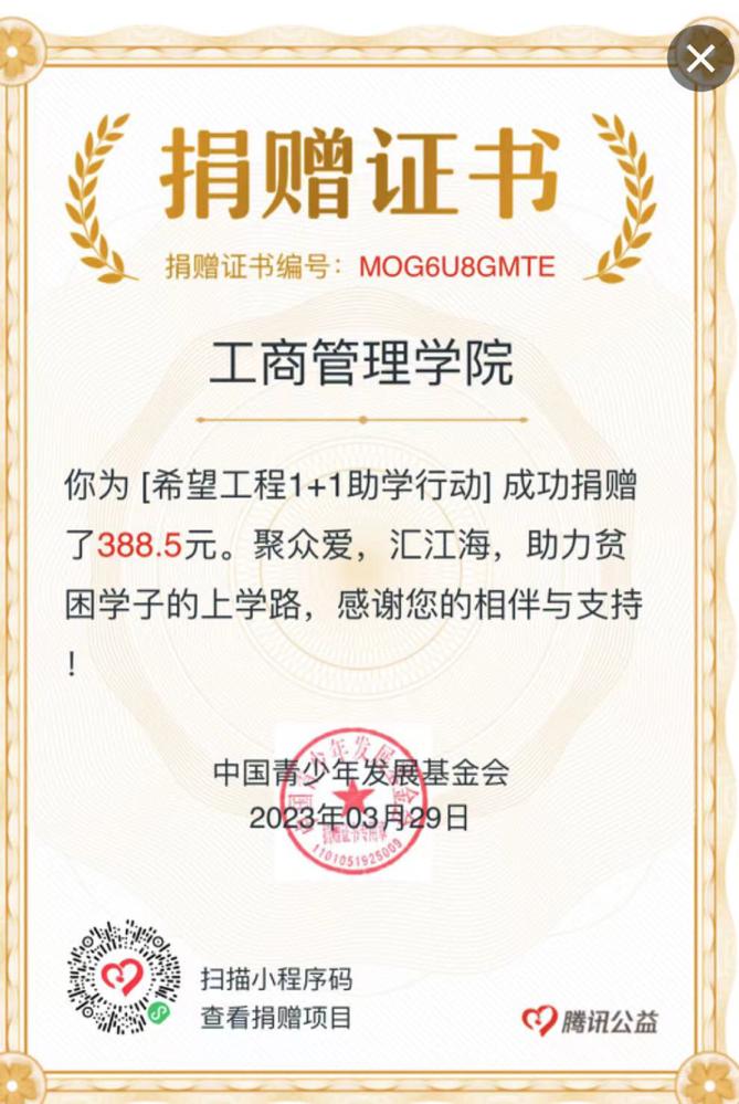 涓涓之水成江河,点点爱心变希望。本次义卖活动以“学雷锋月”为契机,培养了同学们乐于奉献的优秀品质,让beat365官网师生在实践中传递和感受雷锋精神的内涵。此次义卖共筹得善款388.5元,活动结束后,同学们将义卖所得的所有款项,捐赠至中国青少年发展基金会,切实将爱心传递到了实处,同时提升了beat365官网学子的专业技能和社会责任感。
