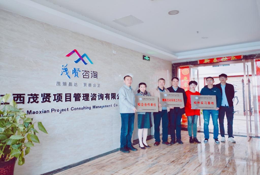 2023年4月4日上午,城乡建设学院副院长吕亨龙、挂职副院长张乐一行赴江西茂贤项目管理咨询有限公司举行校企合作单位挂牌仪式。