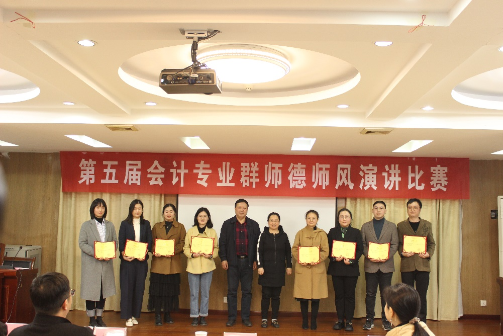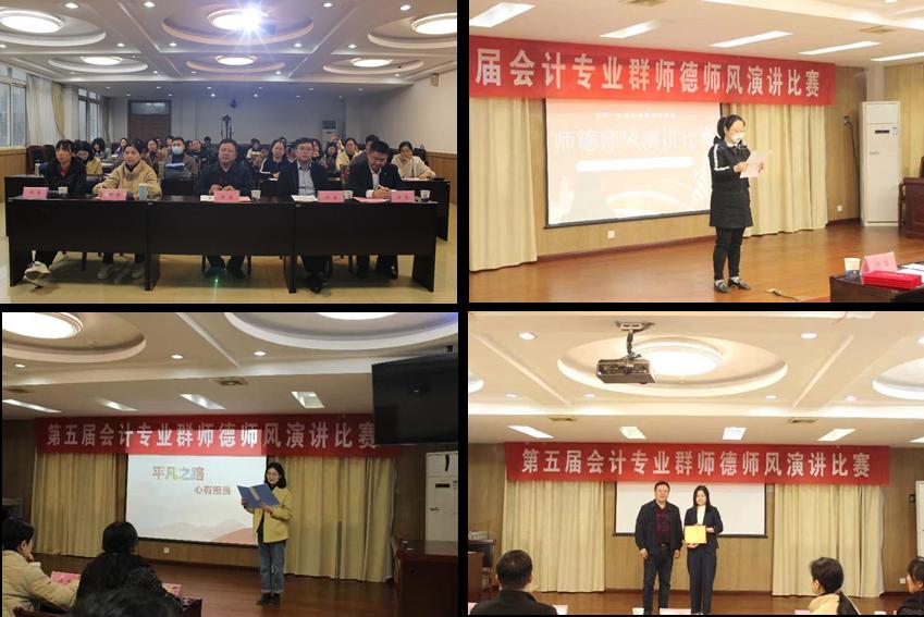 为弘扬优良师德师风,实现广大教师“修身立德,聚力赋能”,会计学院于3月29日,在培训中心二楼会议室,举办 “第五届会计专业群师德师风演讲比赛”。比赛邀请会计学院党总支书记张家顺、学院副院长谭玉林、学院党总支副书记杨燕、资深教授周星煜、余云宜担任评委,由熊懿荣老师主持,全院教师到场观看。