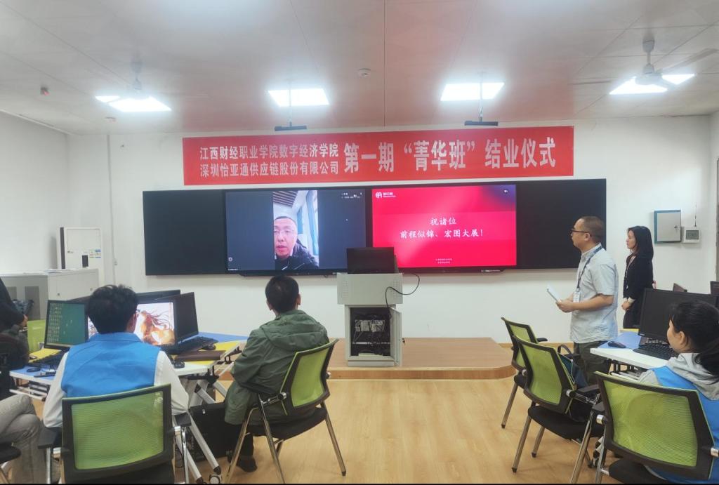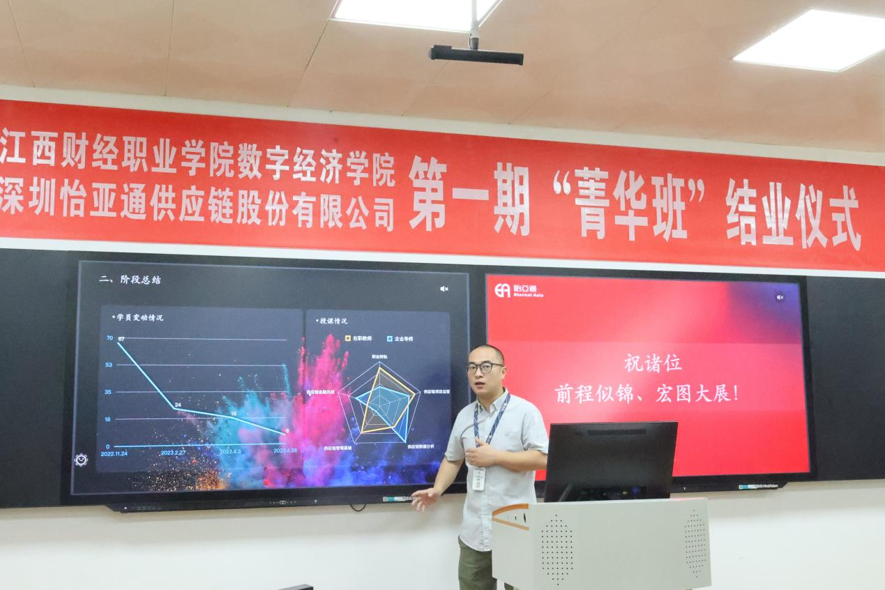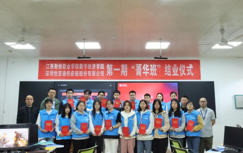 追光而遇,沐光而行;云程发轫,万里可期。4月27日上午,数字经济学院第一期怡亚通“菁华班”结业仪式在东区实训楼隆重举行。校党委委员刘锋,数字经济学院副院长李俊峰、谭宏,深圳市怡亚通供应链股份有限公司教育事业部高级运营总监陈伟明出席仪式,仪式由实训教研室主任程曦主持。