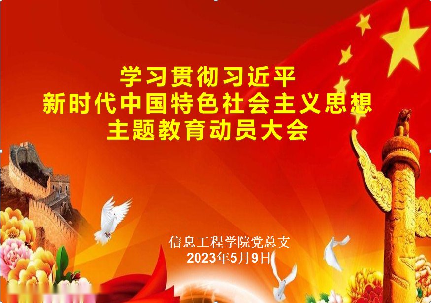 5月9日下午,信息工程学院在综合楼813会议室召开学习贯彻习近平新时代中国特色社会主义思想主题教育动员会,对全院深入开展学习贯彻主题教育工作进行动员部署。学院全体教工党员、学生党员代表等30余人参会,党总支书记韦应珠主持会议并作动员讲话。