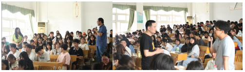 在交流过程中,刘金明校友分享了自己求职、工作经历及感悟,并指导学生如何做好求职的准备工作。告诫同学们在校期间要学好专业知识和技能,培养自己的综合素养、特别是财商意识、吃苦耐劳精神,理性确立目标定位、自信自强、持之以恒。唐镇江校友分享了自己的奋斗历程,特别是详细分享了自己14年从事货代销售业务的心得体悟和销售技能,干货满满,对学生有重要的启迪作用。分享之后,两位校友与学生进行了互动交流,详细地回答了学生提出的各种问题。