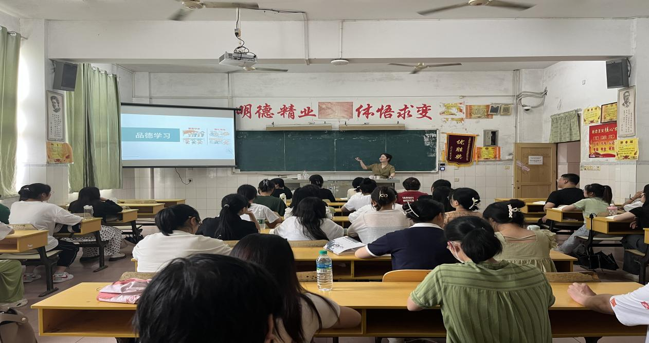 6月7日下午,心理咨询教研室付靓楠老师在教学楼201教室进行《品德学习》公开课教学。付靓楠老师以漫画进行课程导入,以“让座”为问题线索,基于生活实际,引导学生学习品德的内涵、品德形成的一般阶段以及品德的培养方法,将诚实守信、遵纪守法等中华民族传统美德融入教育教学素材之中,帮助学生结合现实情境理解理论知识。付老师的教学思路清晰,教学模式新颖,课堂简洁而有活力,扎实而有实效,让学生在轻松愉快中吸收新知识,取得了较好的教学效果。