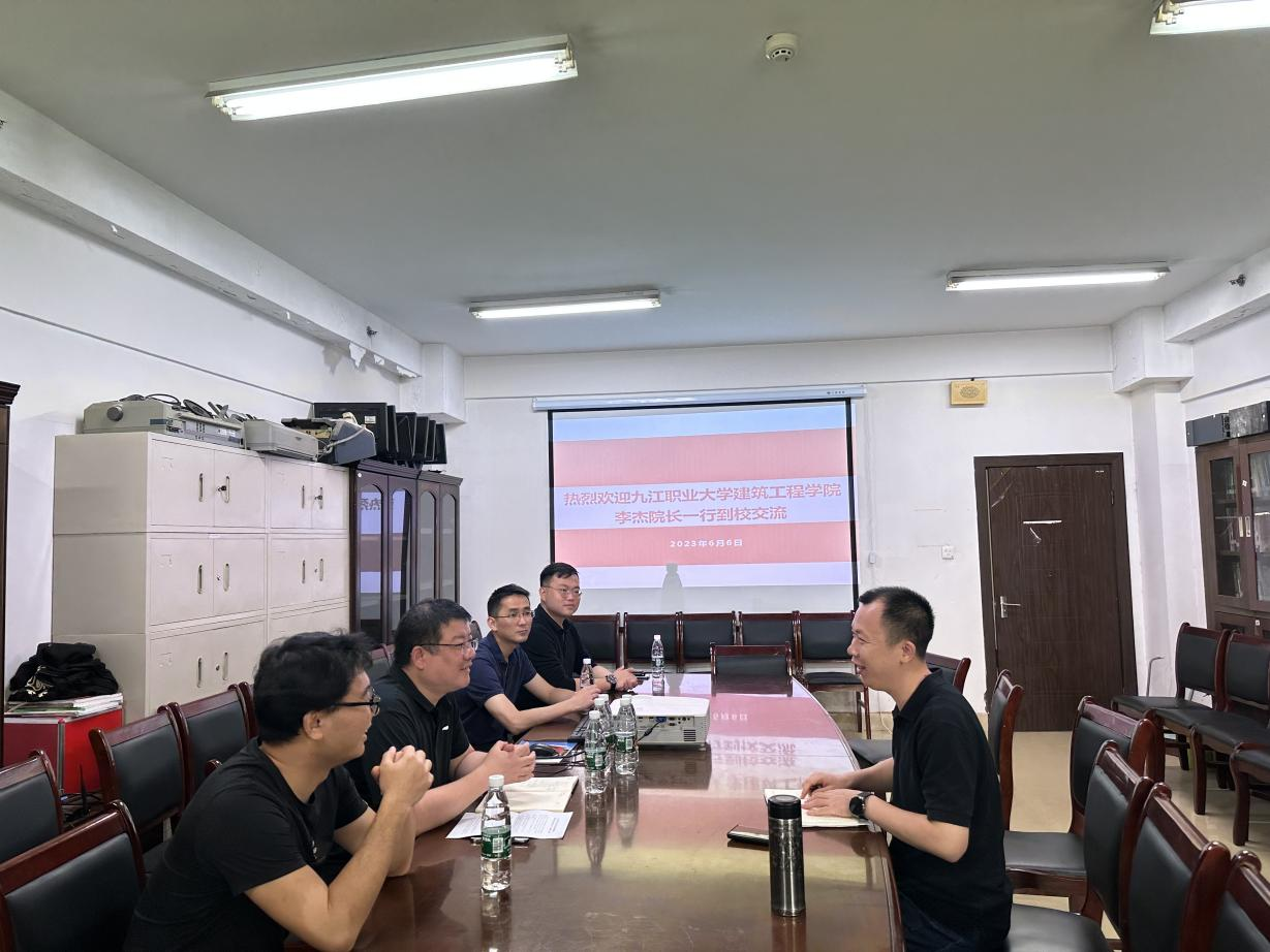 2023年6月6日上午,九江职业大学建筑工程学院院长李杰带队到城乡建设学院开展主题教育调研,城乡建设学院负责人吕亨龙热情接待了李杰一行。