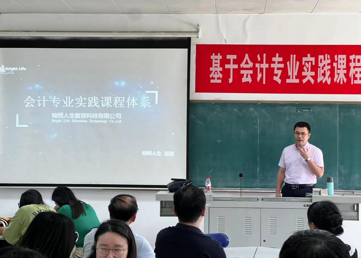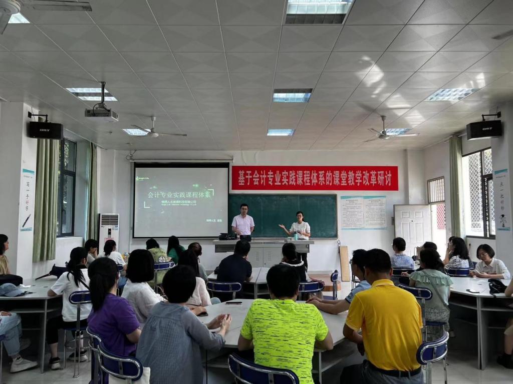 为了进一步提升教师课堂变革的实施成效,推进学生职业实践能力精准对接市场需求,6月14日下午,会计学院全体专业教师在东区实训楼3301教室开展集体教研活动。特别邀请锦绣人生(北京)教育科技有限公司常务副总董强就基于会计专业实践课程体系的课堂教学改革进行专题讲座。