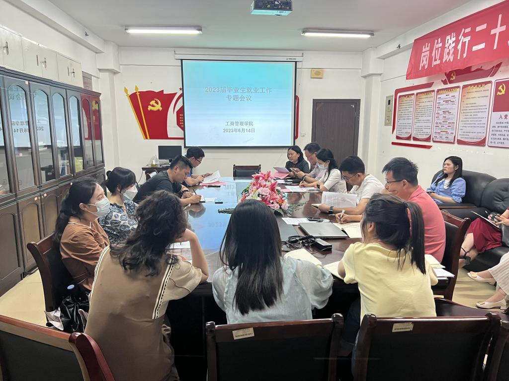 为推进学院毕业生高质量充分就业,6月14日下午,beat365官网在综合楼903会议室召开了2023届毕业生就业工作专题会议。工商管理学院党总支书记武丹、副书记赵新村、本科部党总支书记高小兰以及全体毕业班班主任、辅导员参加此次会议,会议由武丹主持。